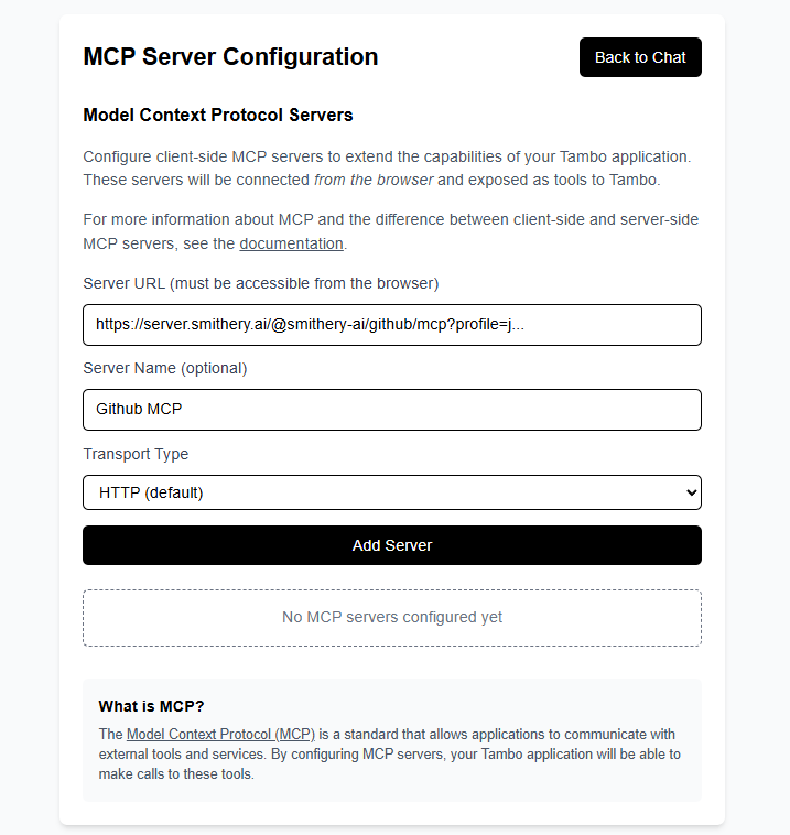 Tambo 是一个用于构建自定义聊天体验的平台,集成了自定义用户界面组件。